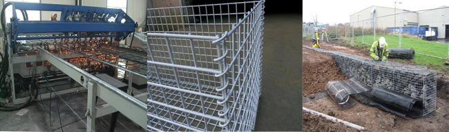Welded Mesh Gabions are manufactured from Pre commercial gal wire or Hot dipped galvanized after welded.